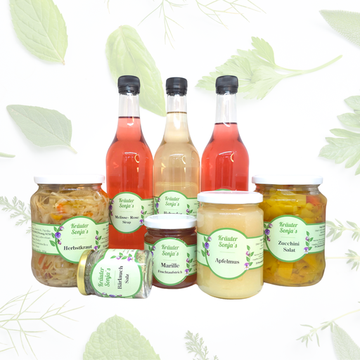 Ich liebe es, saisonale Zutaten aus dem Garten und der Natur in hochwertige Vorräte zu verwandeln. In meiner kleinen Manufaktur entstehen hausgemachte Produkte wie fruchtige Aufstriche, eingelegtes Gemüse, Kräutersalze, Chutneys, Ketchup, Sirupe und vieles mehr. Jedes Glas wird sorgfältig zubereitet, ohne künstliche Zusatzstoffe, mit regionalen Zutaten und viel Herz.